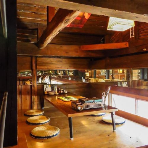 【ロフト座敷席:4名様×1卓】プライベート感たっぷり!落ち着いた空間でゆったりと。店内のロフト部分にある座敷席は、4名様までご利用いただけるプライベート感たっぷりのお席。落ち着いた照明と木の温もりに包まれた空間で、周囲を気にせずお過ごしいただけます。女子会や少人数での飲み会におすすめです。